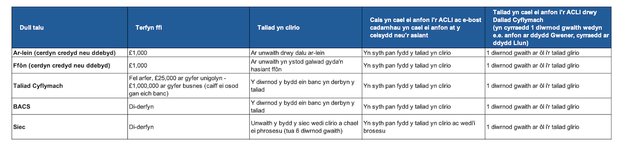 The table above provides information about the time taken for a payment to be processed, once the payment has been matched to your application.